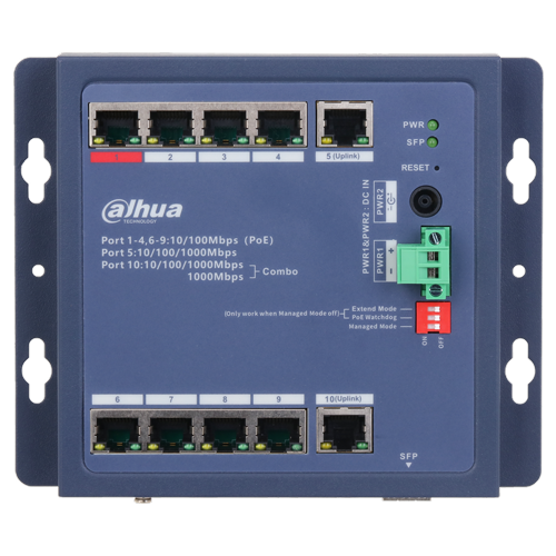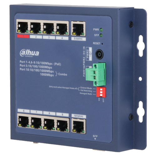 Očvrsnuti cloud upravljivi Layer 2 PoE 10-portni switch sa 8 PoE portova, 1 gigabitni Uplink, 1x Combo Uplink i DIP prekidačima